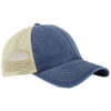 100% schwere, gewaschene Baumwolle | Hintere Netz-Einsätze aus 100% recyceltem Polyester | Leicht gebogenes Sechs-Segmente-Design | Weiches, unverstärktes Cap | Gebogener Schirm | Vintage-Stil | Kontrastnaht-Farbe | Snapback-Größeneinsteller | Abreißetikett