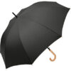 Komfortable Automatik-Funktion zum schnellen Öffnen | Windproof-Features für höhere Gestell-Flexibilität und bessere Windsicherheit, flexible Fiberglasschienen | Wassersparend gefärbtes Polyester-Pongee waterSAVE® Bezugsmaterial aus recycelten Kunststoffen, mit waterSAVE® Label auf dem Schließband | Echtholzspitzen, Rundhakengriff aus Echtholz | Höherer Korrosionsschutz durch schwarze Galvanisierung des Stahlstocks