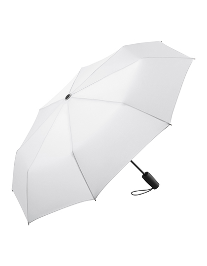 Komfortable Doppelautomatik-Funktion zum schnellen Öffnen und Schließen des Schirms | Hochwertiges Windproof-System für eine maximale Gestell-Flexibilität bei stärkeren Windböen | Handsympathischer Soft-Feel-Griff mit integrierter Auslösetaste, elastischer Tragekordel und Werbeanbringungsmöglichkeit | Griff aus Kunststoff