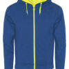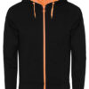 Slub Garn | Unisex Sweat-Jacke mit fluoreszierenden Teilen | Durchgehender Reißverschluss mit fluoreszierenden Puller | Kapuzeninnenseite aus Meshgewebe, Kordelzug und Metall-Ösen in fluoreszierender Farbe | 1×1 Ripp-Strick am Ärmelbündchen und Saum | Zwei Fronttaschen | Verstärktes Nackenband | Herausreißbares Label | Innenseite nicht angeraut