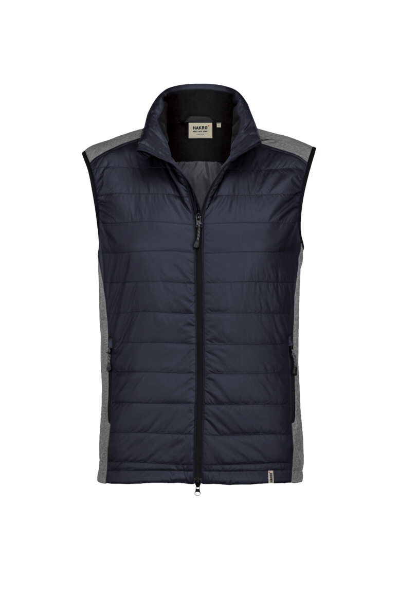 Leichte, wasserabweisende Hybridweste mit Einsätzen aus Softshellmaterial an den Seiten, Schultern und am Kragen. Verlängertes, abgerundetes Rückenteil mit Reflexapplikation für bessere Sichtbarkeit. Weitenverstellbarer Saumabschluss mit Tunnelkordelzug und Stoppern. Hochwertiger 2-Wege-Frontreißverschluss mit innenliegender Windschutzpatte, Reißverschlussgarage und Einschubtaschen mit Reißverschluss. Alle Reißverschlüsse von YKK® in Schwarz mit reversiblen, reflektierenden Reißverschlussanhängern. Materialmix aus Micro-Ripstop mit Wattierung aus pflegeleichten Kunstfasern und Einsätzen aus dehnfähigem Softshellmaterial. Ein verdeckter Reißverschluss im inneren Rückenteil (Revisionsöffnung) ermöglicht das individuelle Veredeln der Weste. Verfügbar auch als Damenmodell. Normale Passform: Regular Fit.