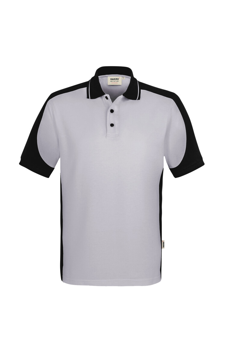 Besonders strapazierfähiges Poloshirt mit Drei-Loch Knopfleiste und Einsätzen in Kontrastfarbe Schwarz an den Seiten, Schultern, Ärmeln und am Kragen sowie kontrastfarbigen, gerippten Ärmelbündchen (Schwarz: Kontrast in Farbe Karbongrau). Doppelt geriegelte Seitenschlitze, Nackenband und Leasingkoller zur einfachen Kennzeichnung in der gewerblichen Wäscherei und Aufhängebänder im Saum. Besonders pflegeleichtes und funktionelles Piqué aus MIKRALINAR® ECO, dem HAKRO Performance-Materialmix aus Baumwolle und GRS-zertifiziertem, recyceltem Polyester. Verfügbar auch als Damenmodell mit Vier-Loch-Knopfleiste. Normale Passform: Regular Fit.