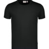 Besonders strapazierfähiges T-Shirt mit Rundhalsausschnitt, geripptem Halsbündchen und Nackenband. Leasingkoller zur einfachen Kennzeichnung in der gewerblichen Wäscherei und Aufhängebänder im Saum. Mittelschwerer, besonders pflegeleichter und funktioneller Single-Jersey aus MIKRALINAR® ECO, dem HAKRO Performance-Materialmix aus Baumwolle und GRS-zertifiziertem, recyceltem Polyester. Normale Passform: Regular Fit.