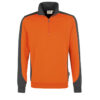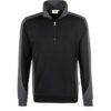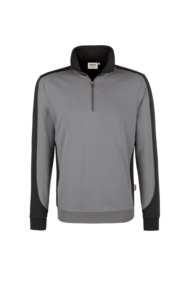 Besonders strapazierfähiges Zip-Sweatshirt mit Einsätzen in Kontrastfarbe Anthrazit an den Seiten, Ärmeln, Schultern und am Kragen sowie kontrastfarbigen, gerippten Ärmelbündchen. Leasingkoller zur einfachen Kennzeichnung in der gewerblichen Wäscherei und Aufhängebänder im Saum. Hochwertiger Reißverschluss von YKK® Ton in Ton. Mittelschweres Sweatmaterial aus MIKRALINAR®, dem HAKRO Performance-Materialmix aus Baumwolle und Polyester. Innenseite nicht angeraut (French-Terry). Formstabile, LYCRA®-verstärkte Bündchen. Lockere Passform: Comfort Fit.