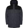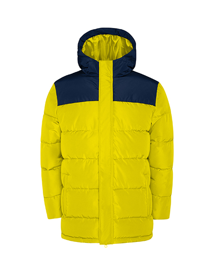 Gepolsterte Jacke mit fester Kapuze | Frontreißverschluss mit Patte, die den Reißverschluss verdeckt | Kinnschutz | Zwei Seitentaschen mit Reißverschluss | Elastische Bündchen | Veredelungszugang im Rücken und auf der linken Brustseite