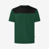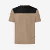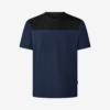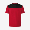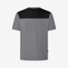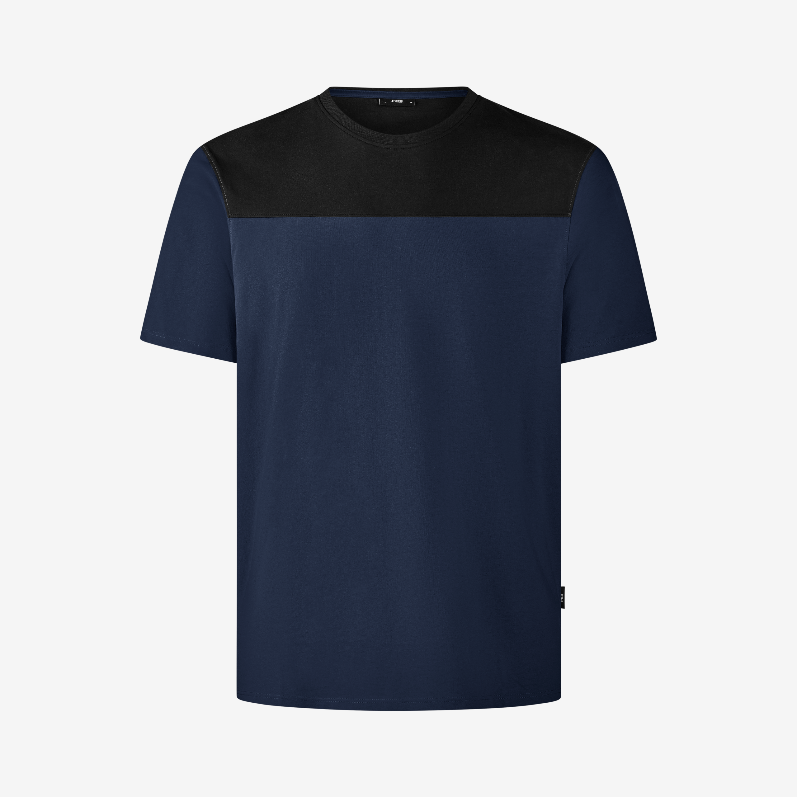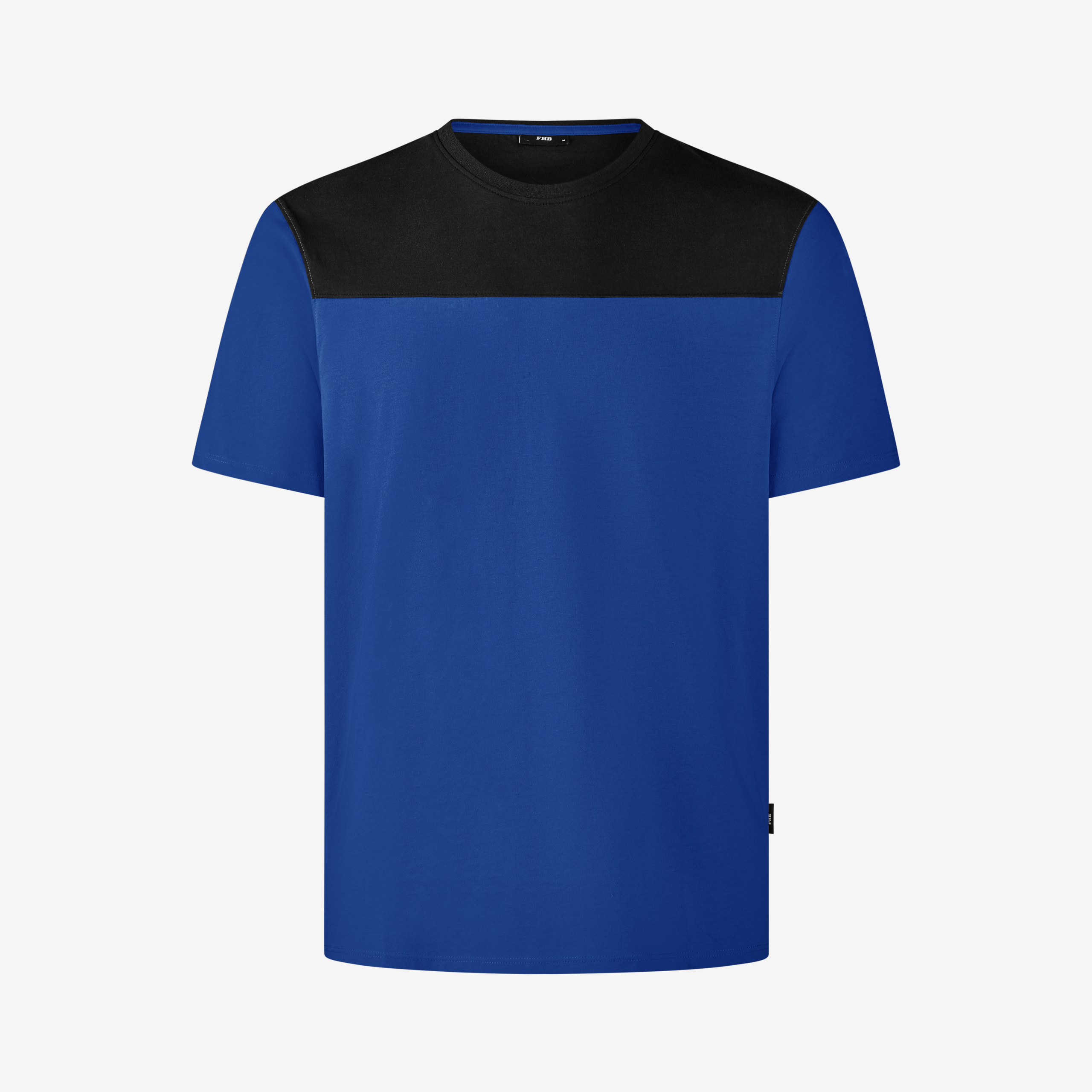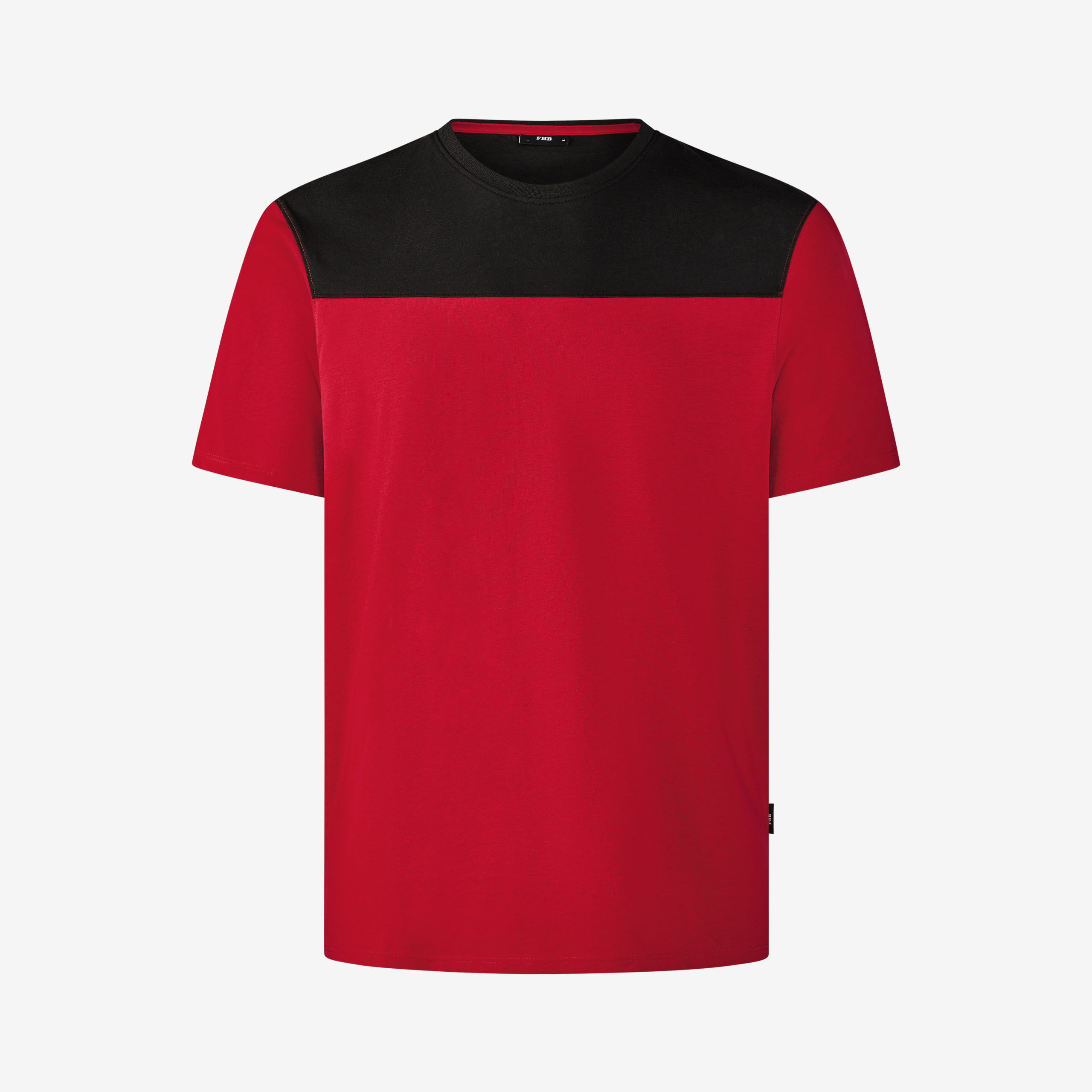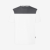 Sitzt körpernah durch schmalen, geraden Schnitt.Formstabiler Rundhalsausschnitt.Verstärkung durch Nackenband und Doppellage im Nacken.Der Kontrastbereich liegt oberhalb der Veredelungsposition.