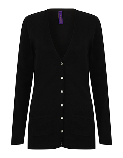 Feinstrick | 12 Gauge | Cardigan mit V-Ausschnitt | Knöpfe mit Perlmutt-Effekt | 1×1 Ripp-Kragen | Rundgestrickter Saum und Bündchen | Set-in Ärmel | Zwei Fronttaschen