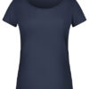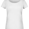 Gekämmte, ringgesponnene Bio-Baumwolle, Single Jersey | Halsferner Rundhalsausschnitt und Ärmel mit Rollsaum | Tear off!® – Label | Leicht taillliert