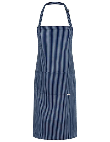Köpergewebe, 185 g/m² | Hochveredelt, gekrumpft, farbig bedruckt, weiße Nadelstreifen | Latzschürze mit Bändern aus Schürzenstoff, mit Nahtsicherung | Latzband mit Schnalle zum stufenlosen Einstellen der Länge bis 70 cm | Aufgesetzte Tasche mit 2 Fächern, 34 x 18 cm | Waschbar bis 40°C