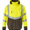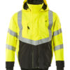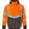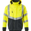 Fluoreszierend und mit Reflexschulterstreifen sowie schräg verlaufenden Reflexen. Zweifarbig. Atmungsaktiv, wind- und wasserdicht. Nähte sind verklebt. Futter aus Netzmaterial. Kapuze, abnehmbar, gefüttert und mit Elastikschnüren regulierbar, so dass diese über einen Helm passt. Regulierbare Stabilisierung an beiden Seiten der Kapuze. Netzventilation mit Reißverschluss unter den Ärmeln. Stehkragen. Innenkragen aus Strick. Wasserdichte Stifttasche am Ärmel. Verschluss mit Reißverschluss und Wetterschutzleiste mit Druckknöpfen. Reißverschlussinnentaschen unter der Wetterschutzleiste – die eine speziell für Handys entwickelt, mit Öffnung sowie Schlaufen für das Kopfhörerkabel. Tasche mit Reißverschluss unter der Wetterschutzleiste, mit Platz für ein 7 Zoll Tablet. Verlängerbarer Rücken durch Aufknöpfen zum besseren Schutz vor Wind und Wetter. Brusttasche mit Reißverschluss. D-Ring. Ergonomisch geschnittene Ärmel ermöglichen hohe Bewegungsfreiheit. Rippenbündchen an den Handgelenken schließen gut ab und halten die Kälte draußen. Manschetten mit Verstärkungen aus CORDURA®-Gewebe und Druckknopfverschluss. Vordertaschen mit Reißverschluss.