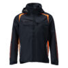 Atmungsaktiv, wind- und wasserdicht. Zweifarbig. Nähte sind verklebt. Abnehmbare Kapuze, mit verstellbaren Elaskikschnüren. Stehkragen. Verschluss mit Reißverschluss und doppelter Wetterschutzleiste. Brusttasche mit Reißverschluss. D-Ring. Innentasche. Ergonomisch geschnittene Ärmel ermöglichen hohe Bewegungsfreiheit. Ärmel mit Windfang. Vordertaschen. Mit Druck und Reflexen.