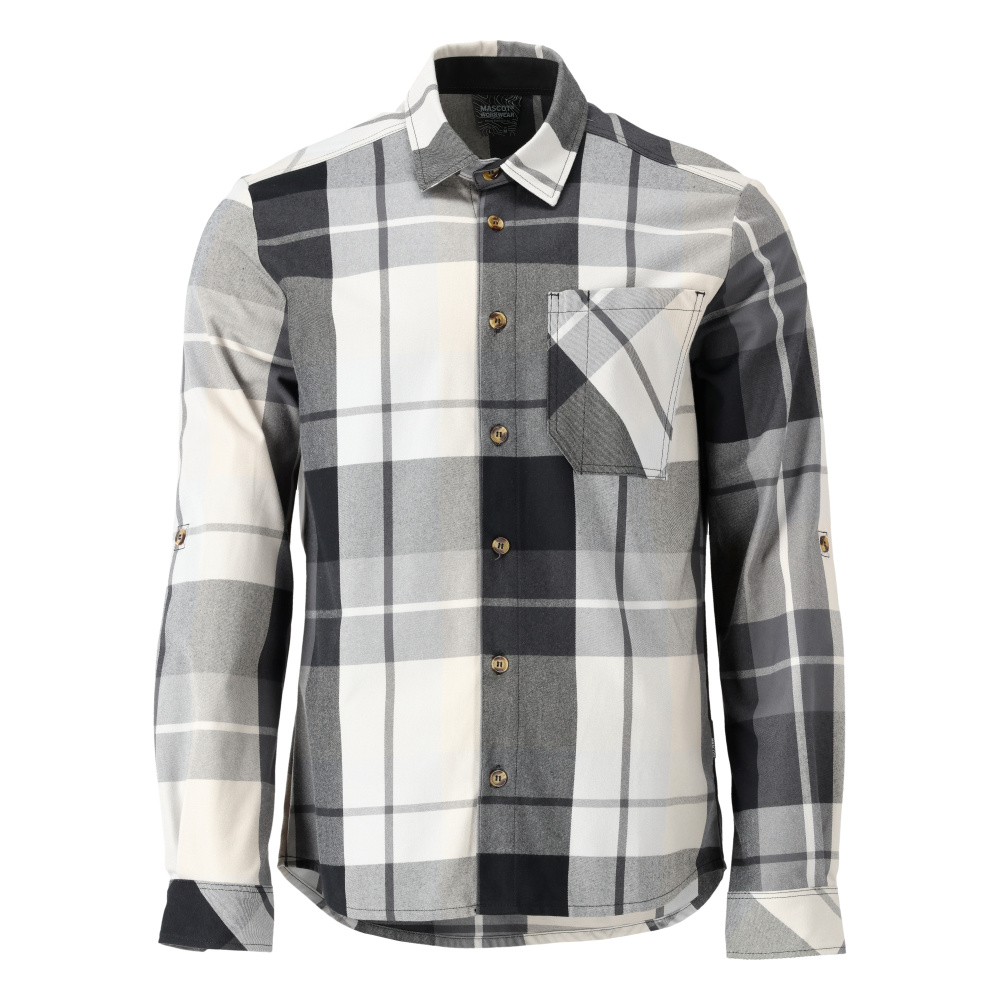 Mit Knopfverschluss. Brusttasche mit Stifttasche. Ärmel können hochgekrempelt und mit Knopf befestigt werden. Ärmelschlitz, verstärkt. Manschetten mit Knopfregulierung.