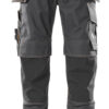 Zweifache und dreifache Kappnähte an den Beinen und im Schritt. Niedrige Taille und formgeschnittener Bund. Hosenbeine sind ergonomisch geformt. Gürtelschlaufen. D-Ring. Hosenschlitz mit Reißverschluss. Werkzeugschlaufen an beiden Seiten des Bundes. Hängetaschen mit Verstärkungen, extra Taschen und Werkzeugschlaufen. Schlitz zum Verstauen der Hängetaschen. Vordertaschen. Gesäßtaschen mit Verstärkungen und Patte mit Klettverschluss. Hammerschlaufen, verstellbar. Schenkeltasche mit Handyfach, Patte und Klettverschluss. Mit CORDURA®-Gewebe verstärkter Zollstock- und kleiner Aussentasche. Stifttasche. Knöpfe zum Anbringen von Messern. Knietaschen aus strapazierfähigem CORDURA® (500 D), höhenregulierbar und mit Patte sowie Eingriff von oben. Kontrastnähte, orange. Reflexeffekte. Zertifiziert zusammen mit Kniepolstertyp large gemäß EN 14404-3.