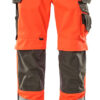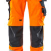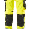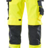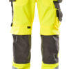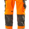 Fluoreszierend mit Reflexen. Zweifarbig. Die Oberflächenbehandlung macht das Produkt schmutzabweisend. Dreifache Kappnähte an den Beinen und im Schritt. Niedrige Taille und formgeschnittener Bund. Hosenbeine sind ergonomisch geformt. Hängetaschen aus CORDURA® Gewebe, verstellbar, mit extra Tasche für Werkzeug. Gürtelschlaufen. Hosenschlitz mit Reißverschluss. D-Ring. Werkzeugschlaufe am Bund. Vordertaschen. Gesäßtaschen, verstärkt, mit Patte und verdeckten Druckknöpfen. Hammerschlaufe, verstellbar. Schenkeltasche mit Verstärkungen und extra Taschen – eine Handy-Tasche innen und eine äußere Handytasche mit Patte und Magnetverschluss. Zollstocktasche mit Randverstärkung aus CORDURA®-Gewebe. Knietaschen aus strapazierfähigem CORDURA® (500 D), höhenregulierbar und mit Patte sowie Eingriff von oben. Senkrechte Reflexstreifen an der Außenseite der Beine für erhöhte Sichtbarkeit. Die Schrittlänge kann um 3 cm verlängert werden, indem die rote Naht innen am Beinabschluss aufgetrennt wird. Zertifiziert zusammen mit Kniepolstertyp large gemäß EN 14404-3.