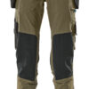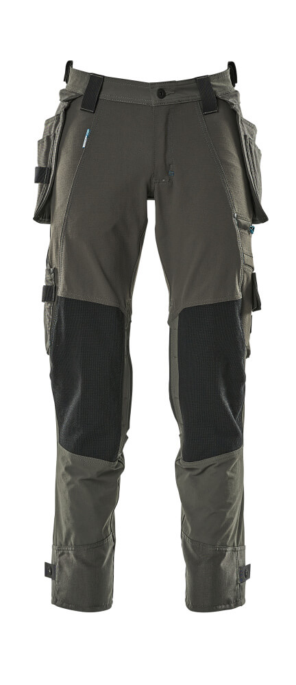 Mit wasserabweisendem Finish. Ultimatives Stretchgewebe mit geringem Gewicht und hoher Strapazierfähigkeit. Der Stoff ist fast nicht auf der Haut zu spüren, da die Taschen im Design integriert sind. Zweifache Kappnähte an den Beinen und im Schritt. Niedrige Taille. Hosenbeine sind ergonomisch geformt. Gürtelschlaufen. Hosenschlitz mit Reißverschluss. Abnehmbare Hängetaschen aus strapazierfähigem CORDURA®-Gewebe – das Vorderteil der rechten Hängetasche hat Verstärkungen aus durchstichfestem Kevlar® im Boden. Vordertaschen. Gesäßtaschen. Werkzeugschlaufen an beiden Seiten des Bundes. Schenkeltasche mit Handyfach, Magnetverschluss und integriertem ID-Kartenhalter. ID-Kartenhalter ist abnehmbar. Zollstocktasche aus CORDURA® Gewebe mit extra Taschen. Strapazierfähige und durchstichfeste Knietaschen aus CORDURA®/Kevlar®/Dyneema® sind elastisch und mit Ventilation. Druckknopfregulierung an den Fußgelenken. Reflexeffekte. Zertifiziert zusammen mit Kniepolstertyp large gemäß EN 14404-3.