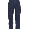Leichte Meterware. Dreifache Kappnähte an den Beinen und im Schritt. Hosenbeine sind ergonomisch geformt. Gürtelschlaufen. D-Ring. Hosenschlitz mit Reißverschluss. Vordertaschen. Gesäßtaschen, verstärkt, mit Patte und verdeckten Druckknöpfen. Schenkeltasche mit Patte und verdeckten Druckknöpfen. Zollstocktasche, verstärkt. Knietaschen, höhenregulierbar. Kontrastnähte.