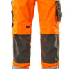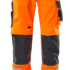 Fluoreszierend mit Reflexen. Zweifarbig. Mit wasserabweisendem Finish. Dreifache Kappnähte an den Beinen und im Schritt. Niedrige Taille und formgeschnittener Bund. Hosenbeine sind ergonomisch geformt. Gürtelschlaufen. Hosenschlitz mit Reißverschluss. D-Ring. Vordertaschen. Gesäßtaschen, verstärkt, mit Patte und verdeckten Druckknöpfen. Hammerschlaufe, verstellbar. Schenkeltasche mit Verstärkungen und extra Taschen – eine Handy-Tasche innen und eine äußere Handytasche mit Patte und Magnetverschluss. Zollstocktasche mit Randverstärkung aus CORDURA®-Gewebe. Knietaschen aus strapazierfähigem CORDURA® (500 D), höhenregulierbar und mit Patte sowie Eingriff von oben. Senkrechte Reflexstreifen an der Außenseite der Beine für erhöhte Sichtbarkeit. Die Schrittlänge kann um 3 cm verlängert werden, indem die rote Naht innen am Beinabschluss aufgetrennt wird. Zertifiziert zusammen mit Kniepolstertyp large gemäß EN 14404-3.