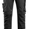 Einfarbig. Leichte Qualität. Dreifache Kappnähte an den Beinen und im Schritt. Niedrige Taille und formgeschnittener Bund. Hosenbeine sind ergonomisch geformt. Gürtelschlaufen. D-Ring. Hosenschlitz mit Reißverschluss. Werkzeugschlaufe am Bund. Geräumige Vordertaschen mit Verstärkungen aus CORDURA®-Gewebe – eine mit leicht zugänglicher Handytasche. Verstärkte Gesässtaschen. Hammerschlaufe, verstellbar. Schenkeltasche mit Handyfach, Patte und verdeckten Druckknöpfen. Zollstocktasche, mit CORDURA®-Gewebe verstärkt. Stifttasche. Knietaschen aus strapazierfähigem CORDURA® (500 D), höhenregulierbar und mit Patte sowie Eingriff von oben. An der Innenseite des Produktes wurde dort, wo die Gesäßtasche, Schenkeltasche und Zollstocktasche platziert sind, als Verstärkung eine extra Lage Stoff angebracht. Reflexeffekte. Zertifiziert zusammen mit Kniepolstertyp large gemäß EN 14404-3.