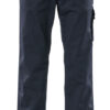 Dreifache Kappnähte an den Beinen und im Schritt. Gürtelschlaufen. Hosenschlitz mit Reißverschluss. Vordertaschen. Verstärkte Gesässtaschen. Hammerschlaufe. Schenkeltasche mit Patte und Klettverschluss. Zollstocktasche, verstärkt.