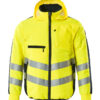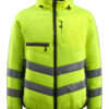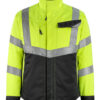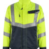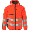 Fluoreszierend und mit schräg verlaufenden Reflexen. Zweifarbig. Atmungsaktiv, winddicht und wasserabweisend. Wattiert mit Polyesterfüllung. Verschluss mit Reißverschluss und inwendiger Wetterschutzleiste. Kapuze kann zusammengefaltet und im Kragen untergebracht werden. Reißverschlussinnentasche speziell für Handys entwickelt, mit Öffnung sowie Schlaufen für das Kopfhörerkabel. Brusttaschen mit Reißverschluss. D-Ring. Stifttasche. Vordertaschen mit Reißverschluss.