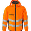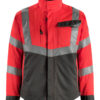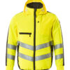 Fluoreszierend und mit Reflexschulterstreifen sowie schräg verlaufenden Reflexen. Zweifarbig. Die Oberflächenbehandlung macht das Produkt schmutzabweisend. Stehkragen. Zweifache Kappnähte an den Schultern, Ärmeln und an den Seiten. Verschluss mit Reißverschluss und Wetterschutzleiste mit Druckknöpfen. Rücken ist verlängert. Brusttasche mit Reißverschluss. Brusttasche mit Patte und Druckknopf. D-Ring. Ergonomisch geschnittene Ärmel ermöglichen hohe Bewegungsfreiheit. Vordertaschen. Innentaschen. Ventilation unter den Ärmeln. Bund mit Druckknopfregulierung. Manschetten mit Druckknöpfen.