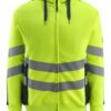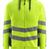 Premium. Fluoreszierend und mit schräg verlaufenden Reflexen. Zweifarbig. Moderne Passform. Angenehme Baumwollinnenseite und strapazierfähiges Polyester an der Außenseite. Reflexe sind elastisch. Kapuze mit Schnüren. Reißverschluss, durchgehend. Vordertaschen mit Reißverschluss. Rippenbündchen an der Unterkante und an den Handgelenken.