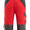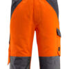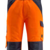 Zweifarbig. Dreifache Kappnähte an den Beinen und im Schritt. Hosenbeine sind ergonomisch geformt. Schulterträger aus Stoff, verstellbar und mit kurzem, kräftigem Gummizug sowie Kunststoffschnallen. Latztasche mit Stiftfach und Patte mit verdeckten Druckknöpfen. Bund ist regulierbar. Hosenschlitz mit Reißverschluss. D-Ring. Vordertaschen. Gesäßtaschen mit Patte. Schenkeltasche mit Patte und verdeckten Druckknöpfen. Zollstocktasche mit Randverstärkung. Knietaschen aus Polyester, höhenregulierbar. Zertifiziert zusammen mit Kniepolstertyp large gemäß EN 14404-3.