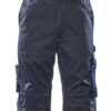 Zweifarbig. Leichte Meterware. Dreifache Kappnähte an den Beinen und im Schritt. Schulterträger aus Stoff, verstellbar und mit kurzem, kräftigem Gummizug sowie Kunststoffschnallen. Latztasche mit Stifttasche, Handytasche sowie Patte mit verdeckten Druckknöpfen. D-Ring. Innentasche mit Klettverschluss. Bund ist regulierbar. Hosenbeine sind ergonomisch geformt. Hosenschlitz mit Reißverschluss. Vordertaschen. Verstärkte Gesässtaschen. Hammerschlaufe, verstellbar. Schenkeltasche mit Handyfach, Patte und verdeckten Druckknöpfen. Zollstocktasche, verstärkt. Stifttasche. Knietaschen aus super strapazierfähigem CORDURA® (1000 D), höhenregulierbar und mit Patte sowie Eingriff von oben. Reflexeffekte. Zertifiziert zusammen mit Kniepolstertyp large gemäß EN 14404-3.