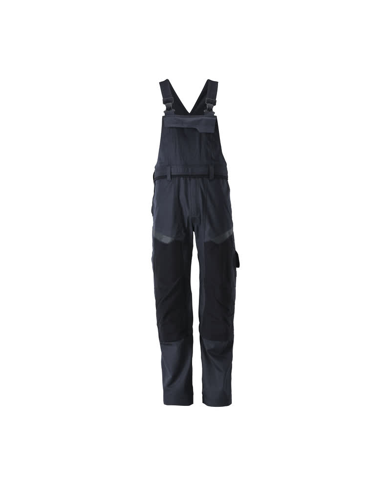Antistatisch, flammhemmend und mit Säureschutz. Schützt bei Lichtbögen. Teile des Produktes sind aus Stretchstoff. Vorbereitet für die Hängetaschen mit Click Pocket System. Zweifache Kappnähte an den Beinen und im Schritt. Hosenbeine sind ergonomisch geformt. Die Hosenträger sind verstellbar und haben Kunststoffschnallen. Latztasche mit Handytasche und Patte mit verdeckten Druckknöpfen. Gürtelschlaufen. Hosenschlitz mit Reißverschluss. Vordertaschen. Zollstocktasche mit Patte, verstärkt. Schenkeltasche mit Handyfach, Patte und verdecktem Druckknopf und integriertem ID-Kartenhalter. ID-Kartenhalter ist abnehmbar. Gesäßtaschen, verstärkt und mit Patte. Knietaschen aus CORDURA®-Gewebe, höhenregulierbar. Einfache und individuelle Regulierung der Knietaschenhöhe. Die Schrittlänge kann um 3 cm verlängert werden, indem die rote Naht innen am Beinabschluss aufgetrennt wird. Mit Druckeffekten.