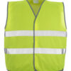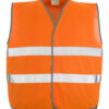 Fluoreszierend mit Reflexen. Verschluss mit Klettband. Eingefasst mit Schrägband. Das Produkt fällt groß aus, da es zum Tragen über der Kleidung gedacht ist.