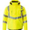 Fluoreszierend und mit Reflexschulterstreifen sowie schräg verlaufenden Reflexen. Atmungsaktiv, wind- und wasserdicht. Nähte sind verklebt. Mit CLIMASCOT® Lightweight Insulation. Wattiert. Futter aus Stepp in den Ärmeln. Stehkragen. Innenkragen aus Strick. Kapuze, abnehmbar, gefüttert und mit Elastikschnüren regulierbar, so dass diese über einen Helm passt. Regulierbare Stabilisierung an beiden Seiten der Kapuze. Verschluss mit Reißverschluss und Wetterschutzleiste mit Druckknöpfen. Reißverschlussinnentaschen unter der Wetterschutzleiste – die eine speziell für Handys entwickelt, mit Öffnung sowie Schlaufen für das Kopfhörerkabel. Tasche mit Reißverschluss unter der Wetterschutzleiste, mit Platz für ein 9,4 Zoll Tablet. Brusttasche mit Reißverschluss. Brusttasche mit Patte und Druckknopf. D-Ring. Ergonomisch geschnittene Ärmel ermöglichen hohe Bewegungsfreiheit. Vordertaschen mit Reißverschluss. Innen verstellbares Zugband in Hüfthöhe. Reißverschluss im Futter am Rücken zum Anbringen eines Logos/einer Stickerei. Rücken ist verlängert. Wasserdichte Stifttasche. Rippenbündchen (verdeckt unter der Wetterschutzleiste) an den Handgelenken. Manschetten mit Verstärkungen aus CORDURA®-Gewebe und Druckknopfverschluss.