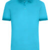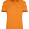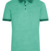 Melange-Polo mit modischen Details | Feiner Single Jersey | Lässige Schnittform | Gestrickter Polokragen und Armbündchen mit Kontraststreifen | Drei Knöpfe