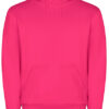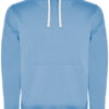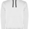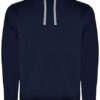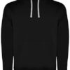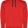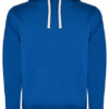 Innen angeraut | Kapuze innen (Single Jersey), Kordelzug und Metall-Ösen in Kontrastfarbe | Nackenband mit Fischgrätmuster | Kangorootasche | 1×1 Ripp-Strick und Elasthan an Ärmelbündchen und Saum | Herausreißbares Label