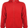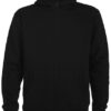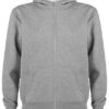 Innen angeraut | Durchgehender Reißverschluss | Ripp-Strick an Kapuze und Eingriffen der Kängurutaschen | 2×2 Ripp-Strick-Bündchen mit Elasthan bei Ärmelbündchen und Saum | Herausreißbares Label