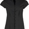 Tailored Fit Mandarin Collar Poplin Blouse Cap Sleeve