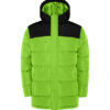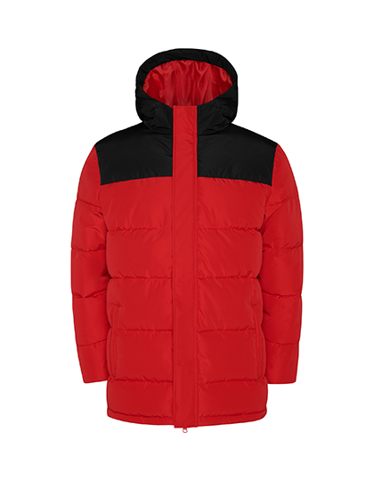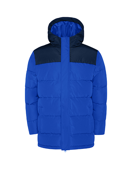 Gepolsterte Jacke mit fester Kapuze | Frontreißverschluss mit Patte, die den Reißverschluss verdeckt | Kinnschutz | Zwei Seitentaschen mit Reißverschluss | Elastische Bündchen | Veredelungszugang im Rücken und auf der linken Brustseite