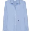 Damenbluse aus 100% Baumwolle | Poplin | Bügelfrei | Kent-Kragen | Doppelknopfmanschette | Rückenabnäher für figurbetonte Passform | Slim Fit und | Langärmelig | Schwarze Rose-Stick auf dem Vorderteil