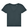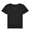100% einlaufvorbehandelte, ringgesponnene Baumwolle | Single-Jersey | Klassische moderne Passform | Mit Seitennaht | Femininer Ausschnitt mit verstärktem V | Nackenband für sauberen Abschluss | Vorverlegte Schulternähte | Kein Label | Widerstandsfähiges Material mit weichem Griff