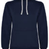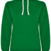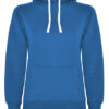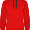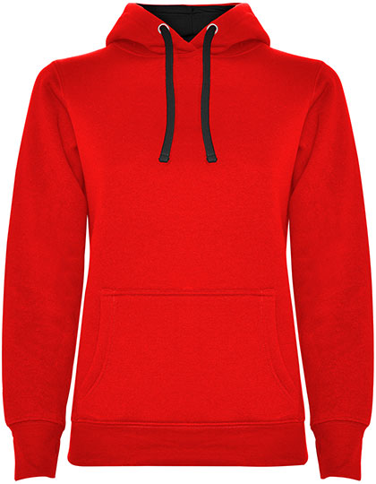 Innen angeraut | Tailliert | Kapuze innen (Single Jersey), Kordelzug und Metall-Ösen in Kontrastfarbe | Nackenband mit Fischgrätmuster | Kangorootasche | Ärmelbündchen und Saum mit 1×1 Ripp-Strick und Elasthan | Ärmelbündchen mit Daumenöffnung | Herausreißbares Label